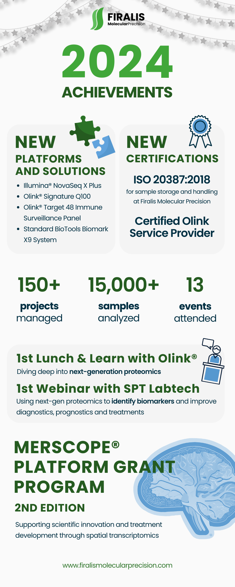 This year, we expanded our product portfolio by adding cutting-edge platforms like the Illumina NovaSeq X Plus and Olink® Signature Q100 to our labs.